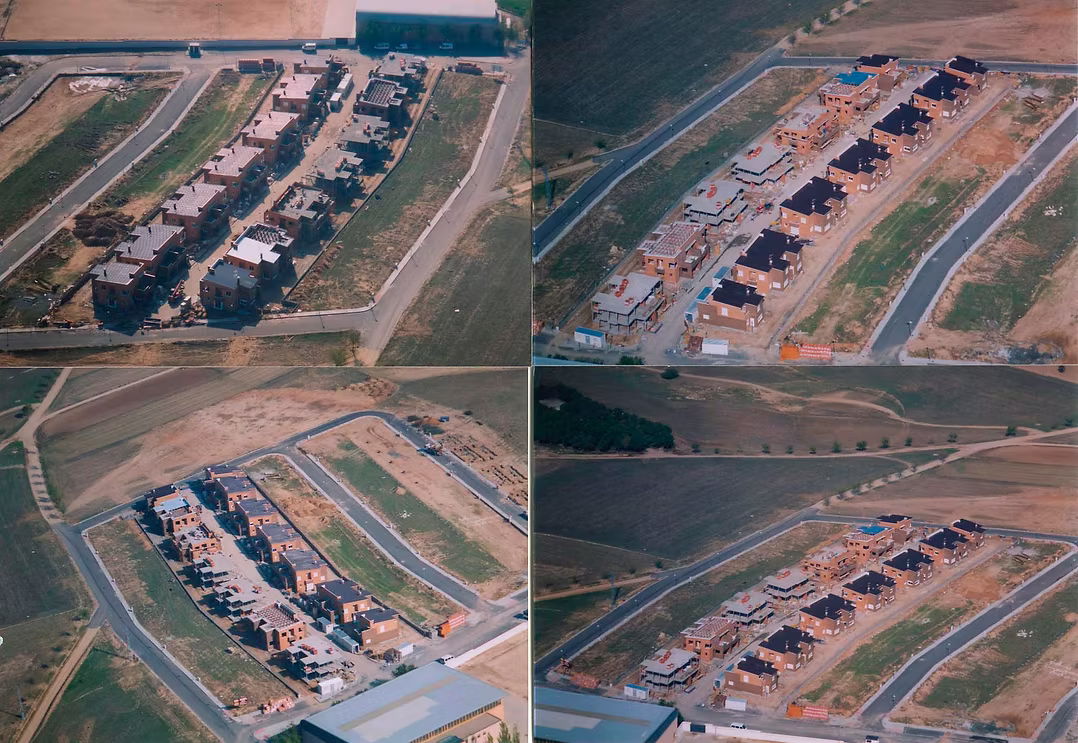 Este conjunto residencial en Camarena, Toledo, se compone de 14 viviendas pareadas de dos plantas. El diseño apuesta por materiales duraderos y una imagen homogénea: fachadas de ladrillo visto y carpinterías blancas. Las viviendas se organizan en hilera, conectadas por una calle principal que estructura el conjunto.