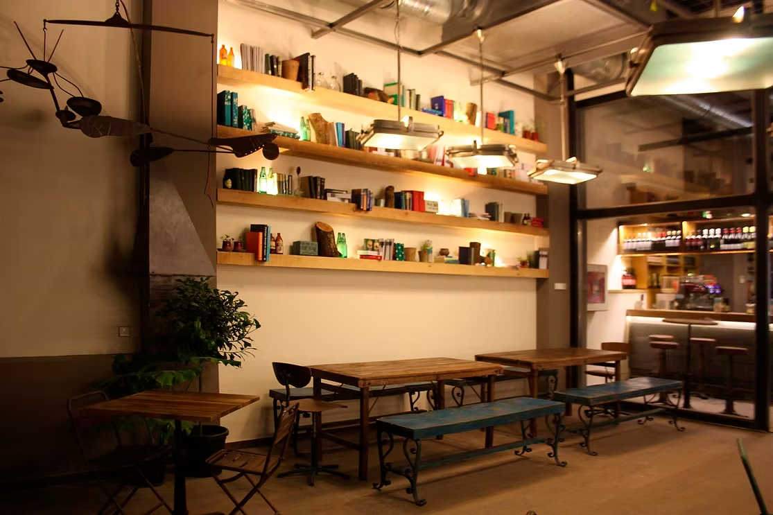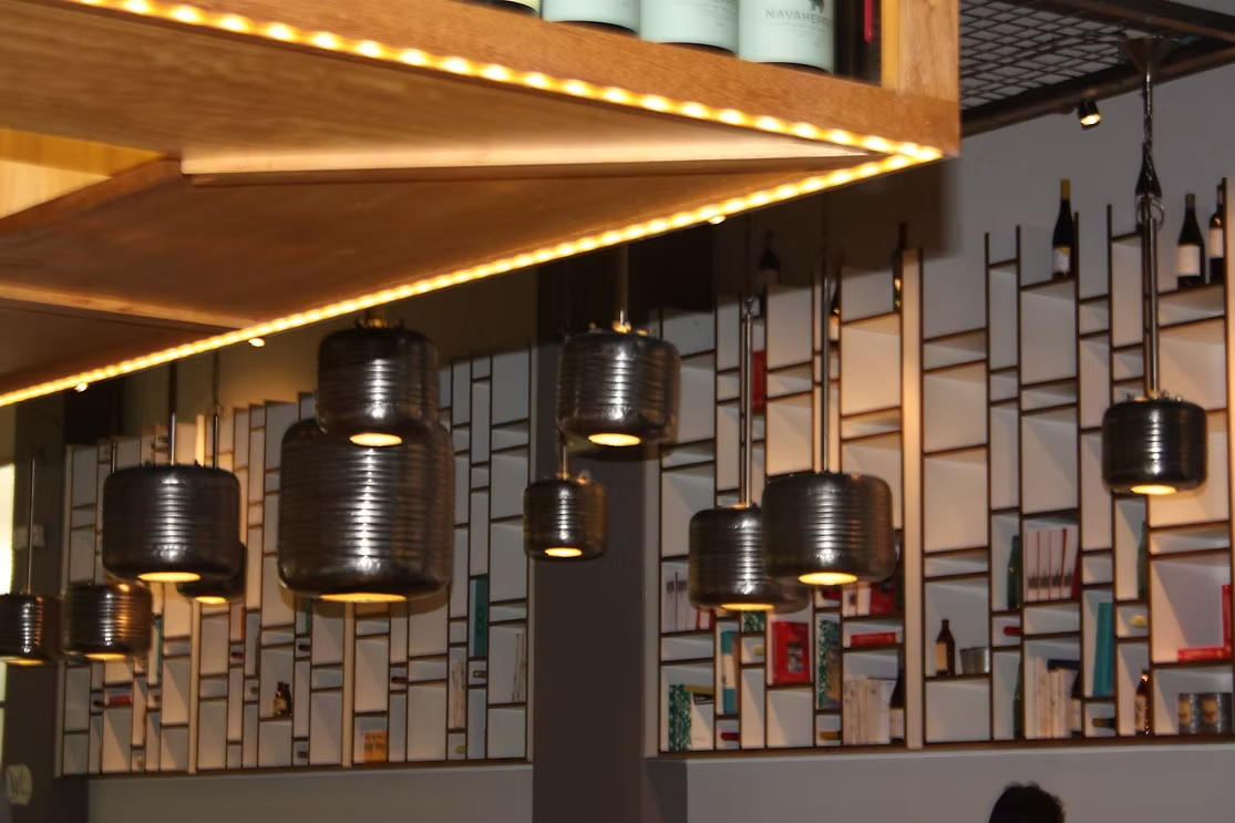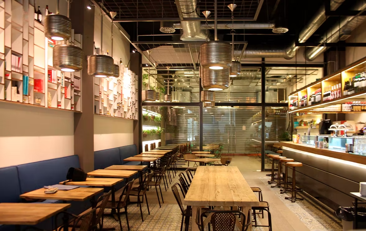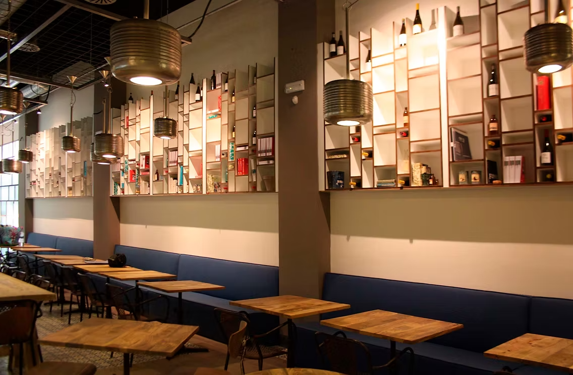 Realizamos el proyecto de obra y acondicionamiento del local de la cafetería Café y Té, en Madrid. El espacio sigue un estilo industrial con instalaciones vistas y mobiliario de madera que aporta calidez.