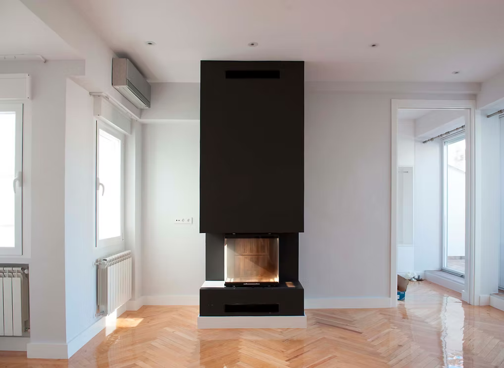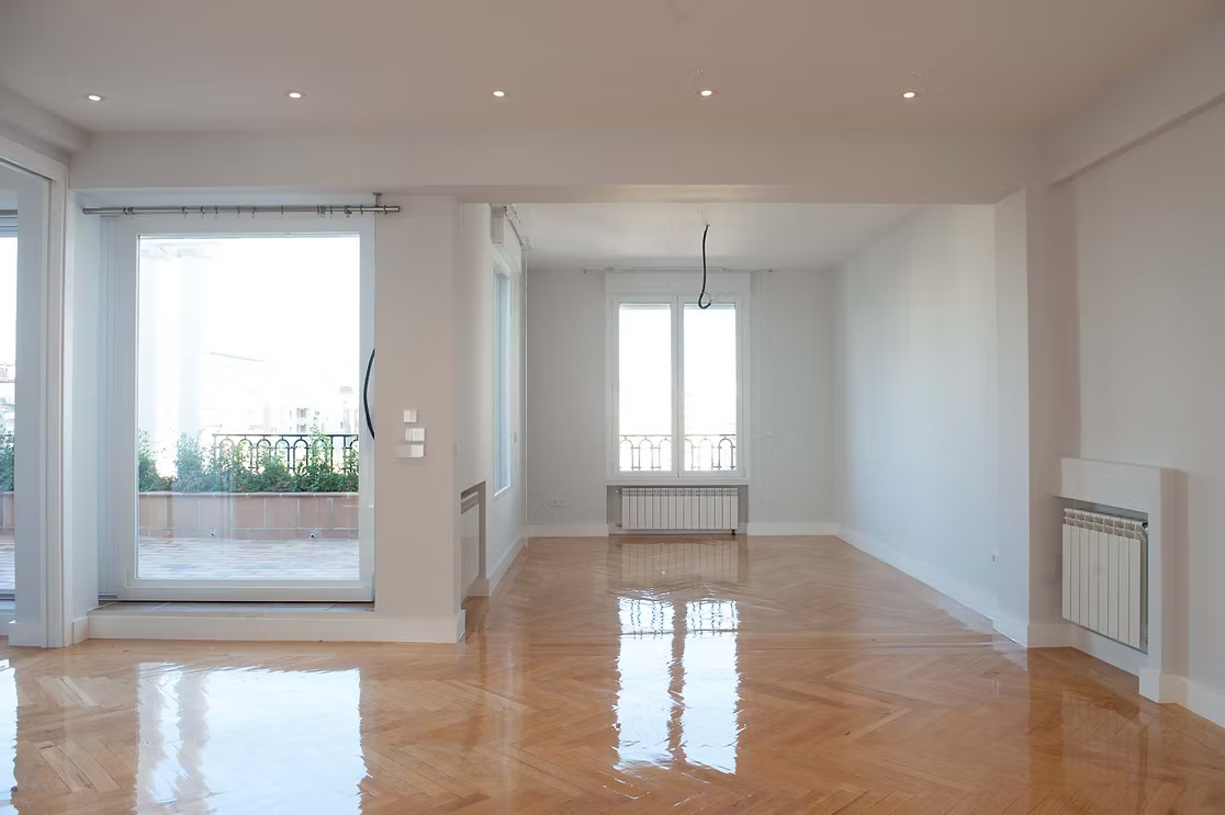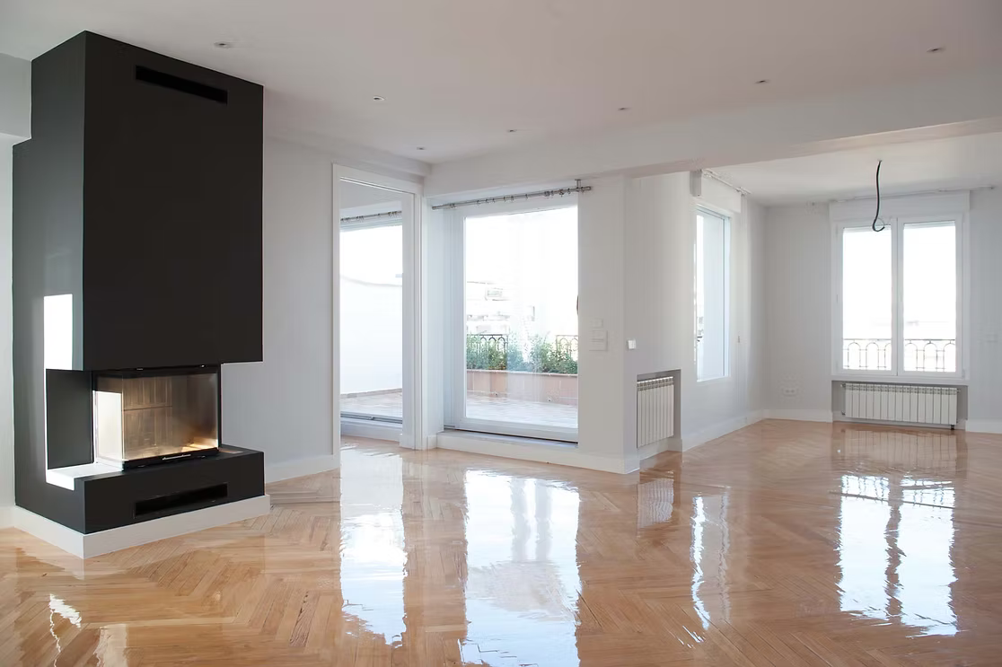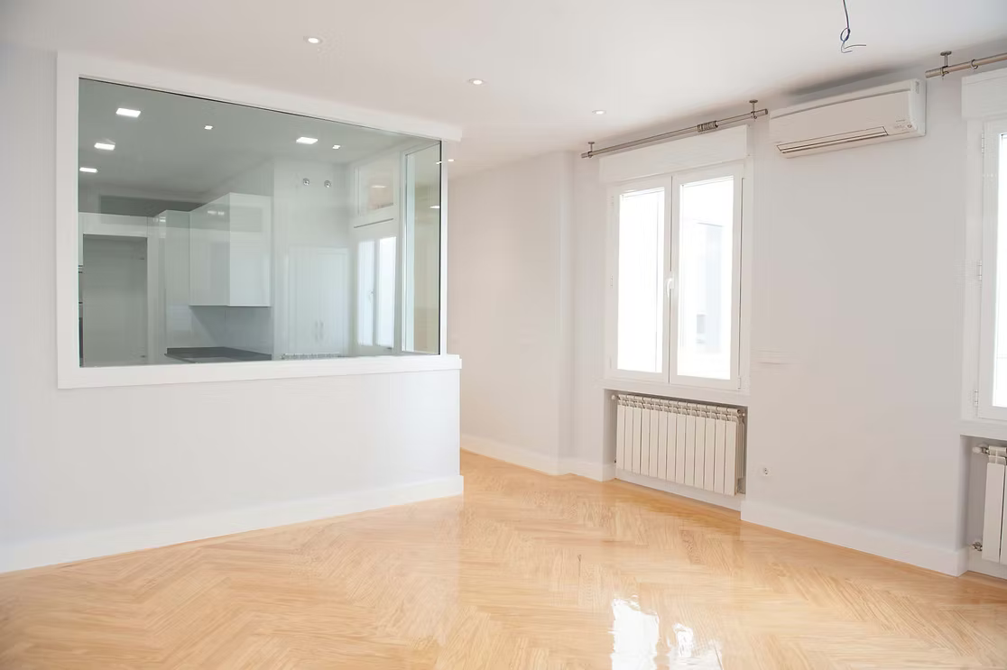 En pleno Barrio Salamanca, esta rehabilitación transforma una vivienda antigua en un espacio contemporáneo. El uso del blanco potencia la entrada de luz natural, mientras una chimenea negra en el salón actúa como elemento focal. Un equilibrio entre memoria y modernidad.