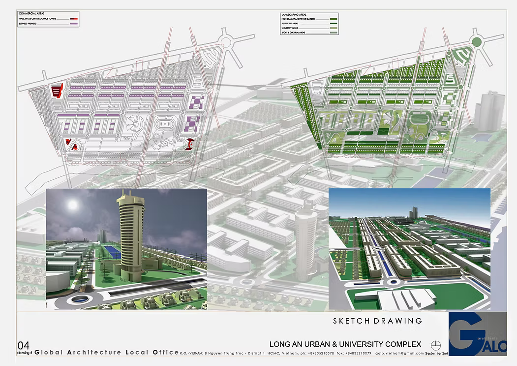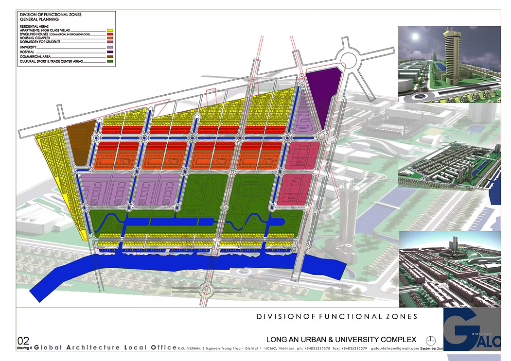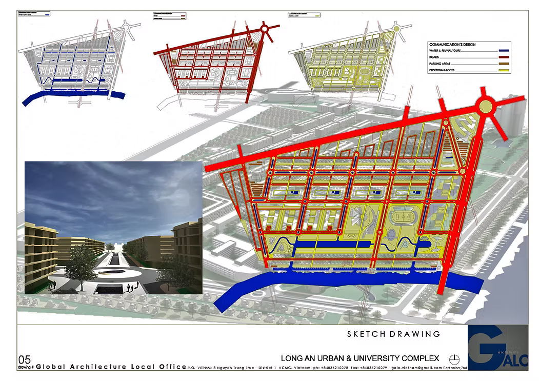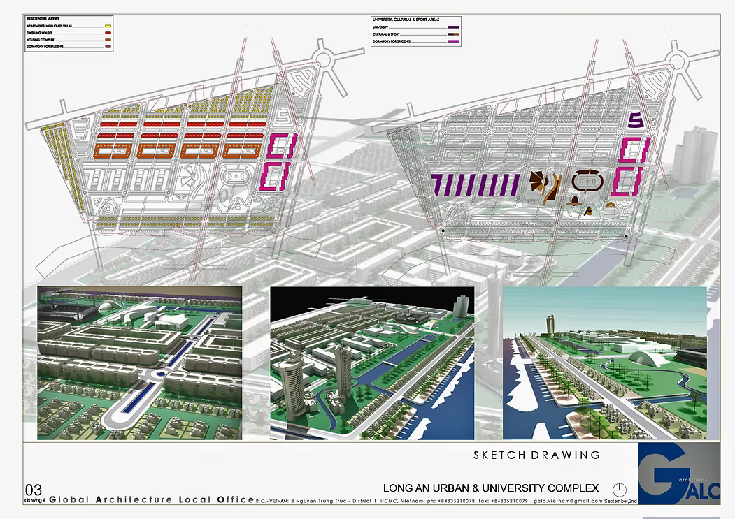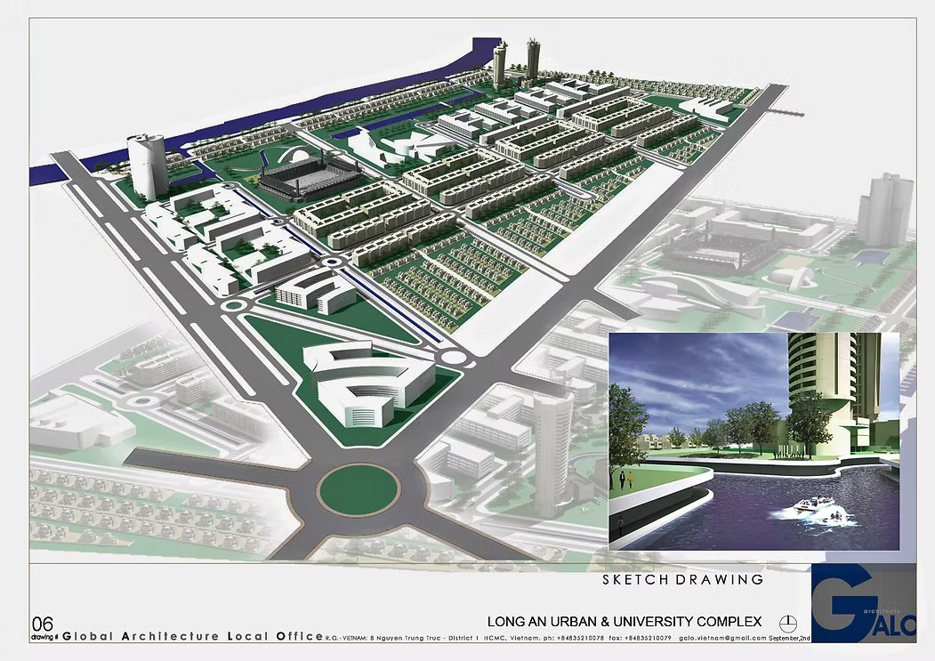 Este proyecto plantea la creación de un gran complejo en Saigón que integra universidad, hospital, zona comercial y de ocio. La propuesta combina sostenibilidad y planificación urbana, situando la zona residencial y educativa en el núcleo, rodeadas de vegetación y conectadas por vías y espacios comunes. Destaca el subproyecto The Aviation, desarrollado más adelante en esta misma página.